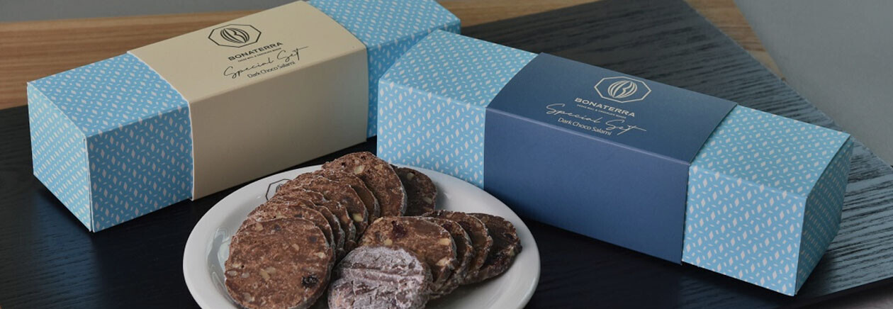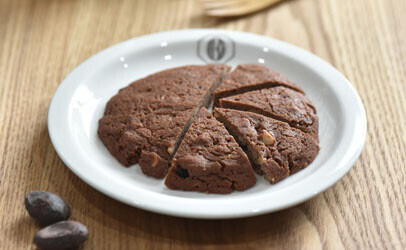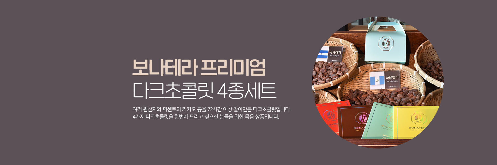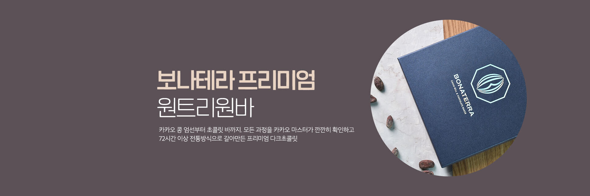- 품질좋은 카카오를 72시간이상을 원주민이 즐기던 방법 그대로 맷돌에 갈아 낸 다크초콜릿에 견과류, 말린 과일을 넣어 만든 고급 디저트